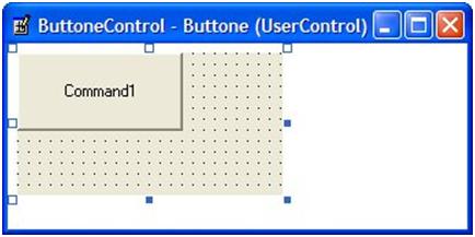 - You get what looks like a blank grey background, that's the surface of your control. As you design that surface is how it will look when you draw it on a form later on. For now, all you need to do is add a command button to the control, so do that and make sure it's in the very top lefthand corner of the UserControl surface: